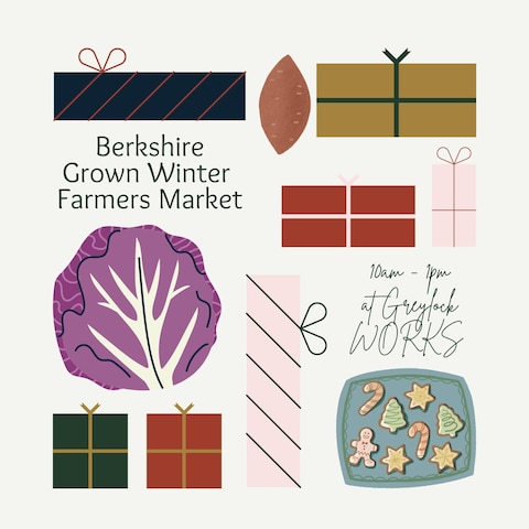 Berkshire Grown Winter Farmers Markets at Greylock WORK! 508 State Road North Adams, MA 10 AM – 1 PM Nov 23, 2025 Vendors offer an abundance of locally-grown food, including fresh greens, winter squash, root crops, apples, meat, cheese, jam, honey and maple syrup, baked goods, and more. Local artisan crafters round out the market offerings, and each market features live music.